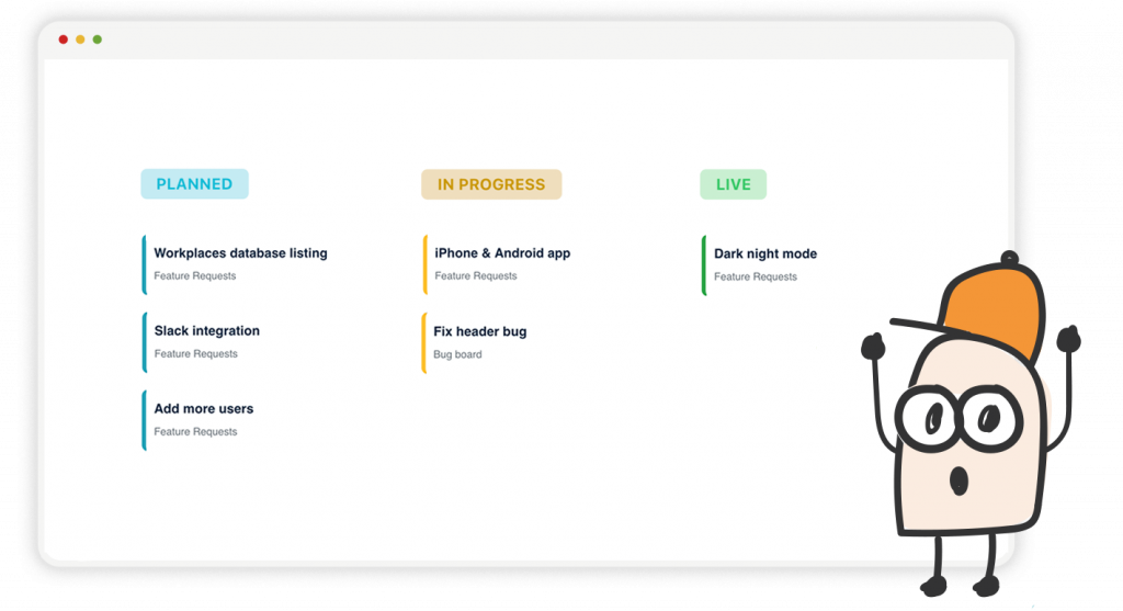 You can share the link to your Upvoty feedback portal, or, you can embed the roadmap and/or feedback boards in your own site or application to make it even more seamless.